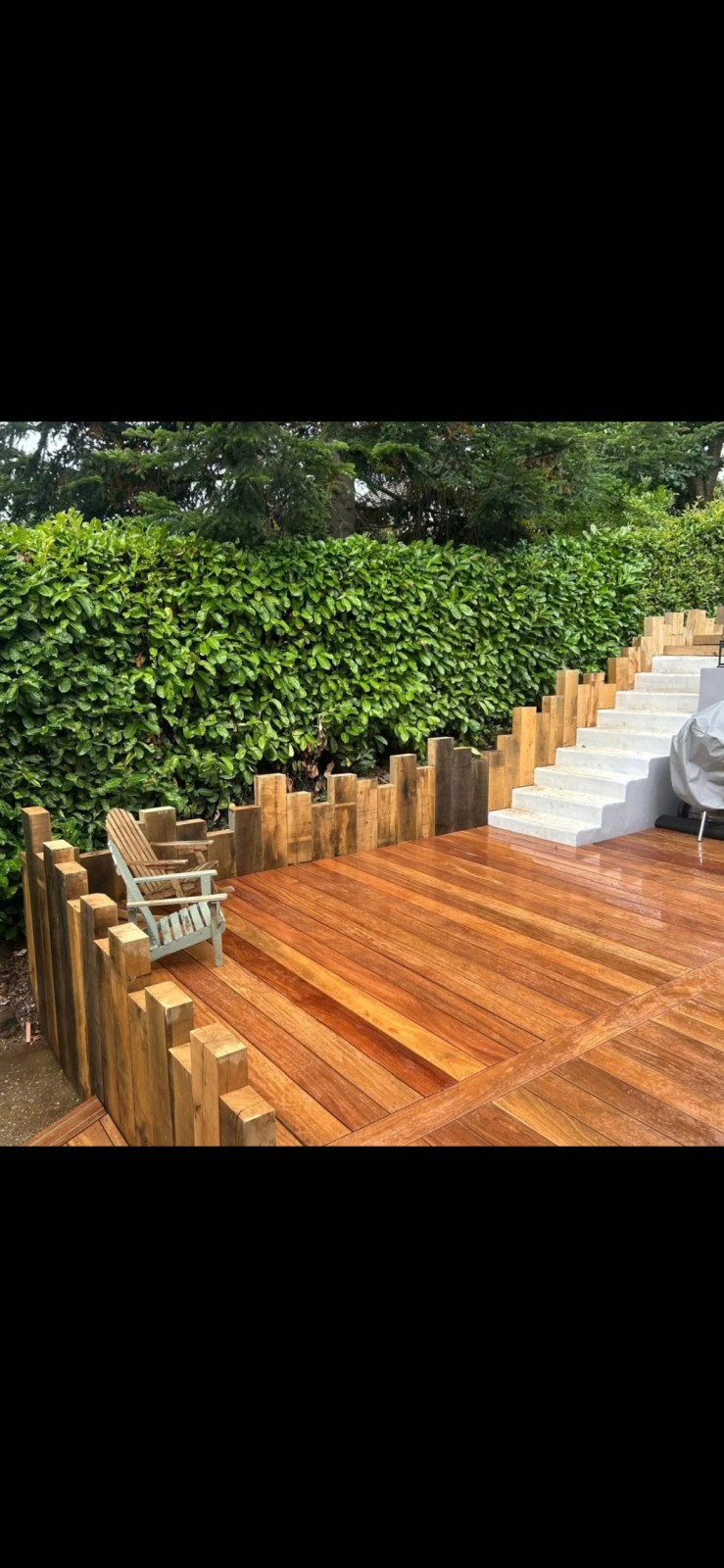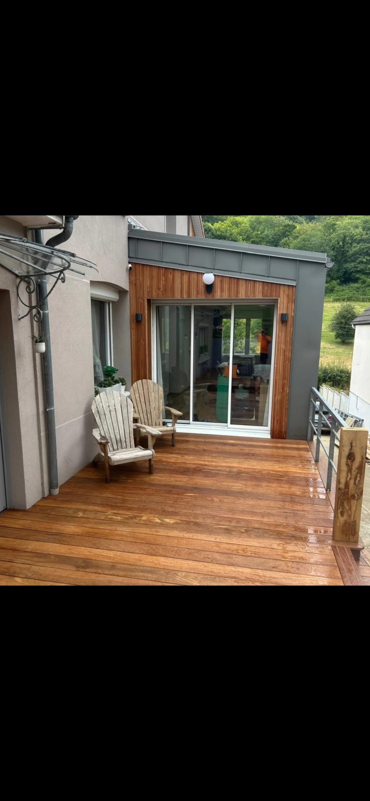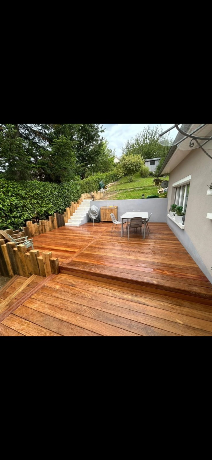- Terrasse en cumaru, bordée de chêne : un espace extérieur chaleureux, idéal pour profiter des beaux jours.