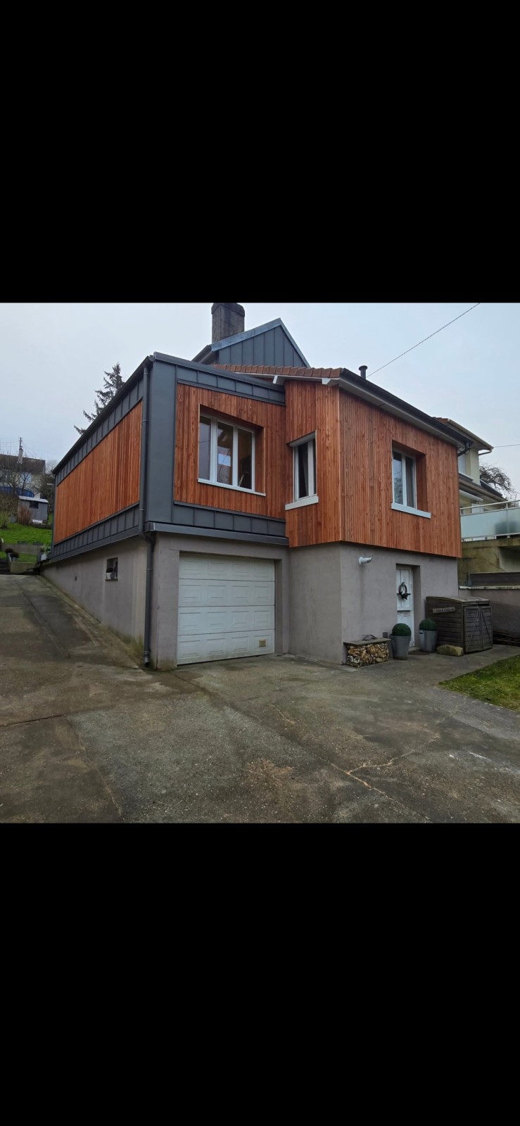 - Bardage mixte (bois claire-voie & zinc) : un jeu de matières unique qui apporte du caractère à la façade.